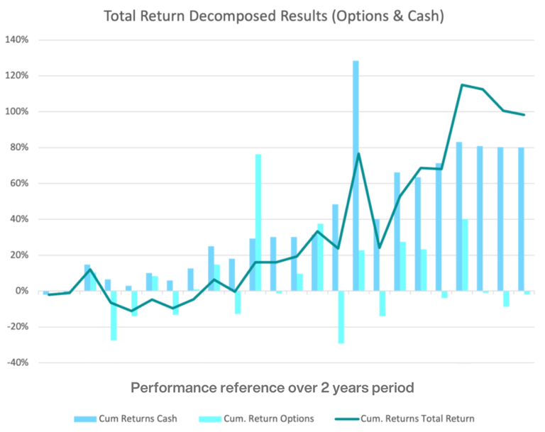 The strategy ensures consistent long-term returns by using a variety of forex instruments. This approach combines fundamental and technical analysis, along with derivatives tactics. It covers a wide range of investments, from short-term trading strategies within a single day to longer-term positions that may stretch up to 1 or 2 years, based on a careful long-term view.